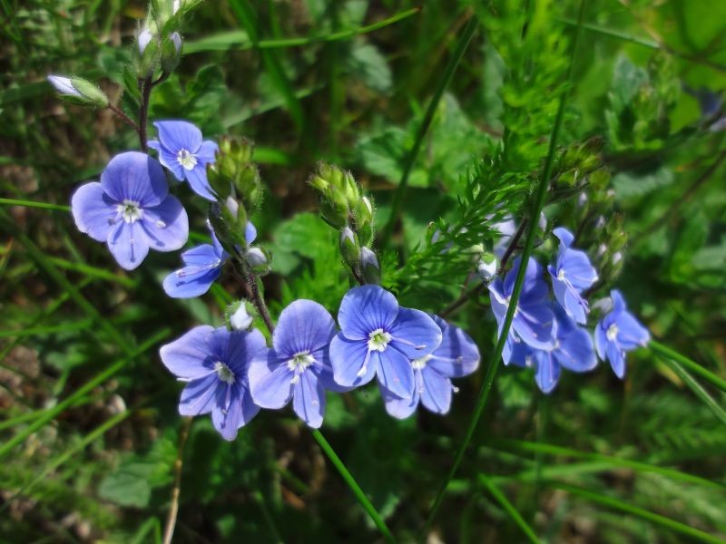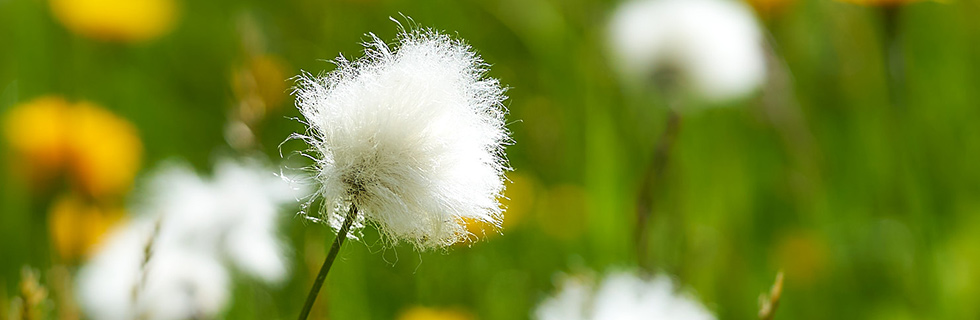 bzw. das Gemeine Fettkraut (blau) fasziniert. Es ist eine zarte, fleischfressende Pflanze. Sie wird zum